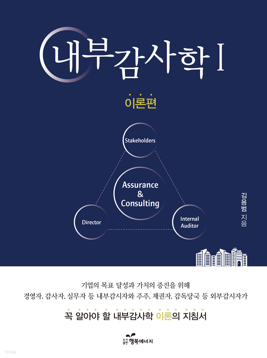 저자김용범(前) 한국은행 과장(前) 금융감독원 IT 업무실장 및 검사국 국장(前) 대구은행 상근감사위원(前) 건양사이버대학교 겸임교수(前) 고려신용정보 감사위원장책 소개미국 「공인부정감사인협회(ACFE)」의 2014년 보고서에 의하면 부정은 내부제보, 내부통제 및 내부감사 등 내부감사시스템에 의해 86.9%가 적발되고 있음에도, 최근 정부의 감사 제도의 개혁은 경영주체들의 도덕적 해이를 효과적으로 견제하기 위한 기업지배구조상 핵심적인 제도적 장치인 내부감사제도의 개혁보다는 부정적발에 3.0% 정도밖에 기여하지 못하는 외부감사인 제도의 선진화에 집중 노력하여 왔다.이와 같은 비정상적인 현실이 하루빨리 打開되고, 내부감사의 중요성에 대한 새로운 인식이 사회 전체로 확산이 필요한 시점에 감독당국에서 다년간 근무하면서 지도했던 지식과 상장회사의 감사 및 대학의 교수로서 경험하고, 고민하고, 연구했던 내용을 정밀하고 자세하게 풀이해 새로이 출간하고자 하는 「내부감사학Ⅰ(이론편)」, 「내부감사학Ⅱ(법무편)」 및 「내부감사학Ⅲ(실무편)」의 3권의 책에 수록하였습니다.(회원 혜택)- 저자로부터 직접 구매하는 회원들에게 10~20% 할인- 연락처 010-5276-8402 Beom1710@hanmail.net도서 구매(더 알아보기)